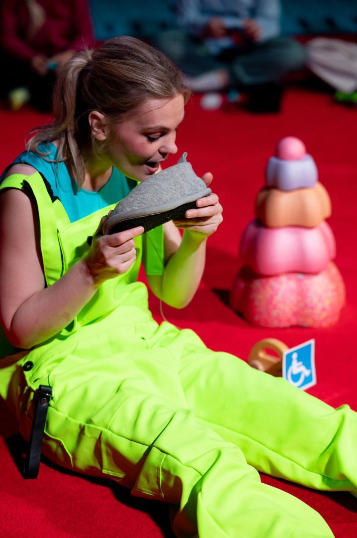 SVARBU. Spektaklio metu kviesime nusiauti batus – visi kartu jaukiai įsitaisysime ant kilimo.